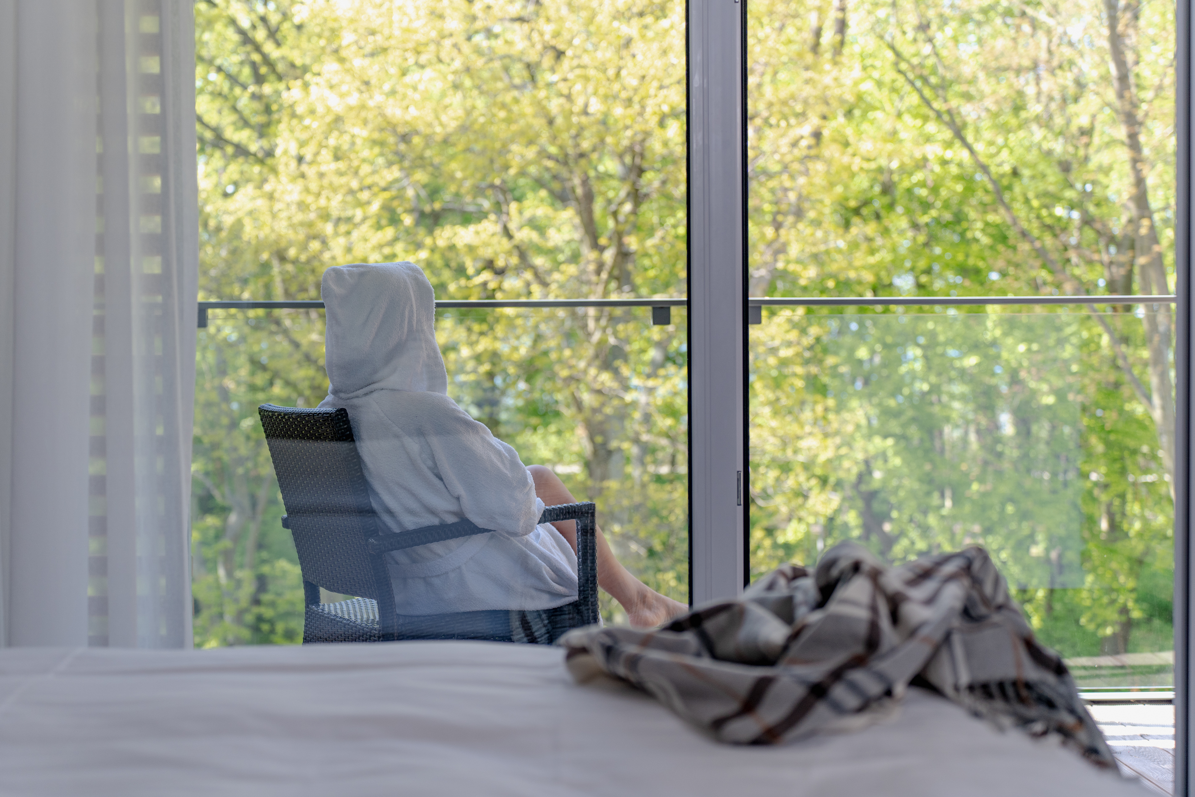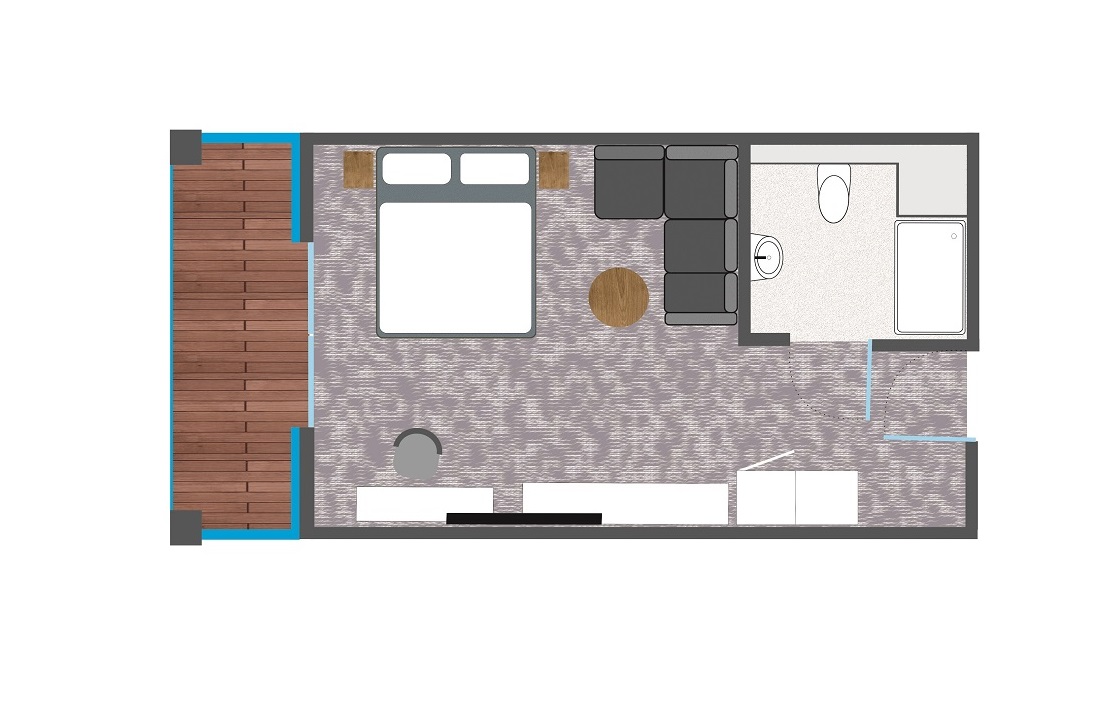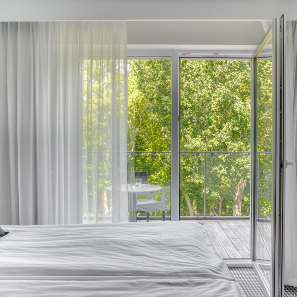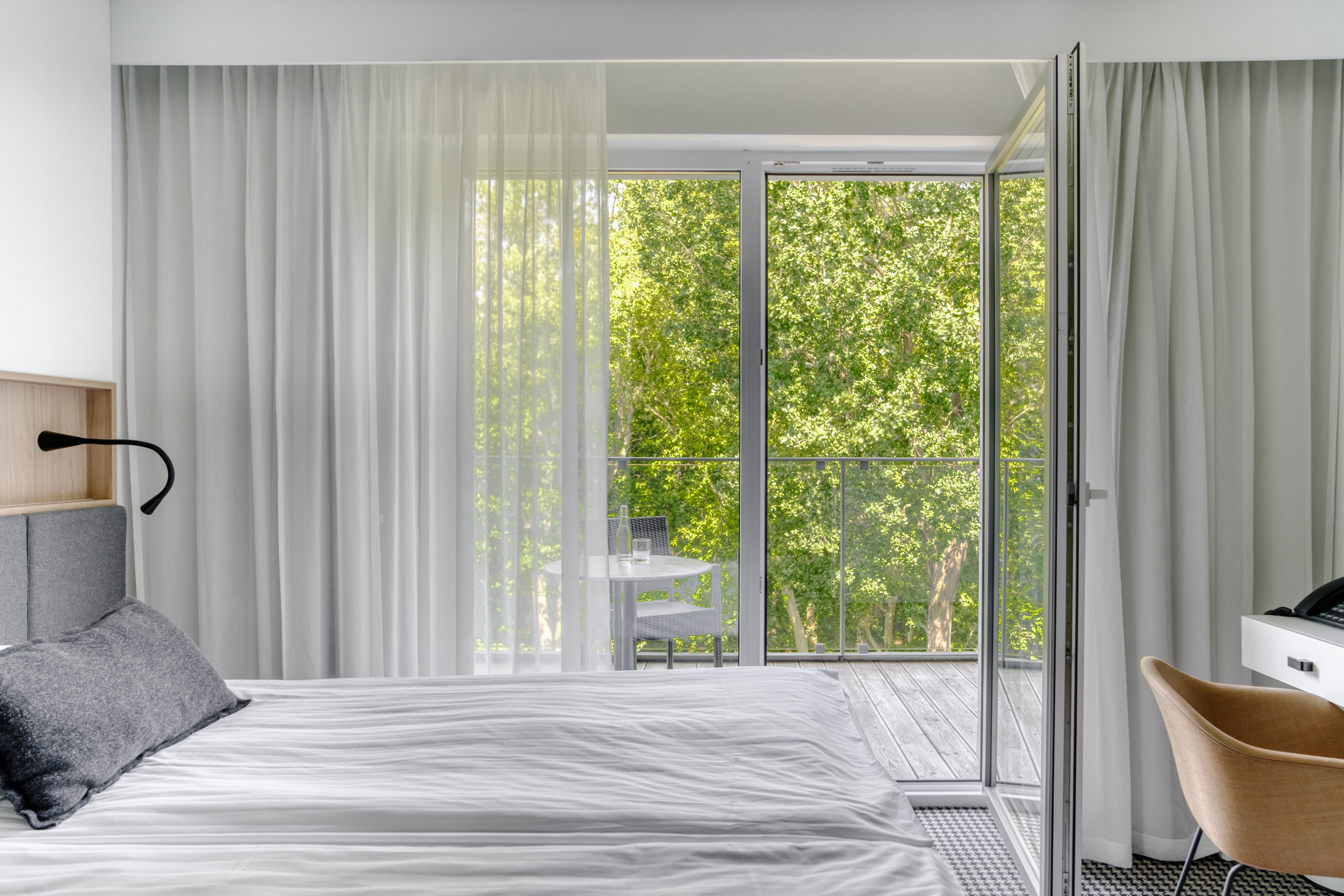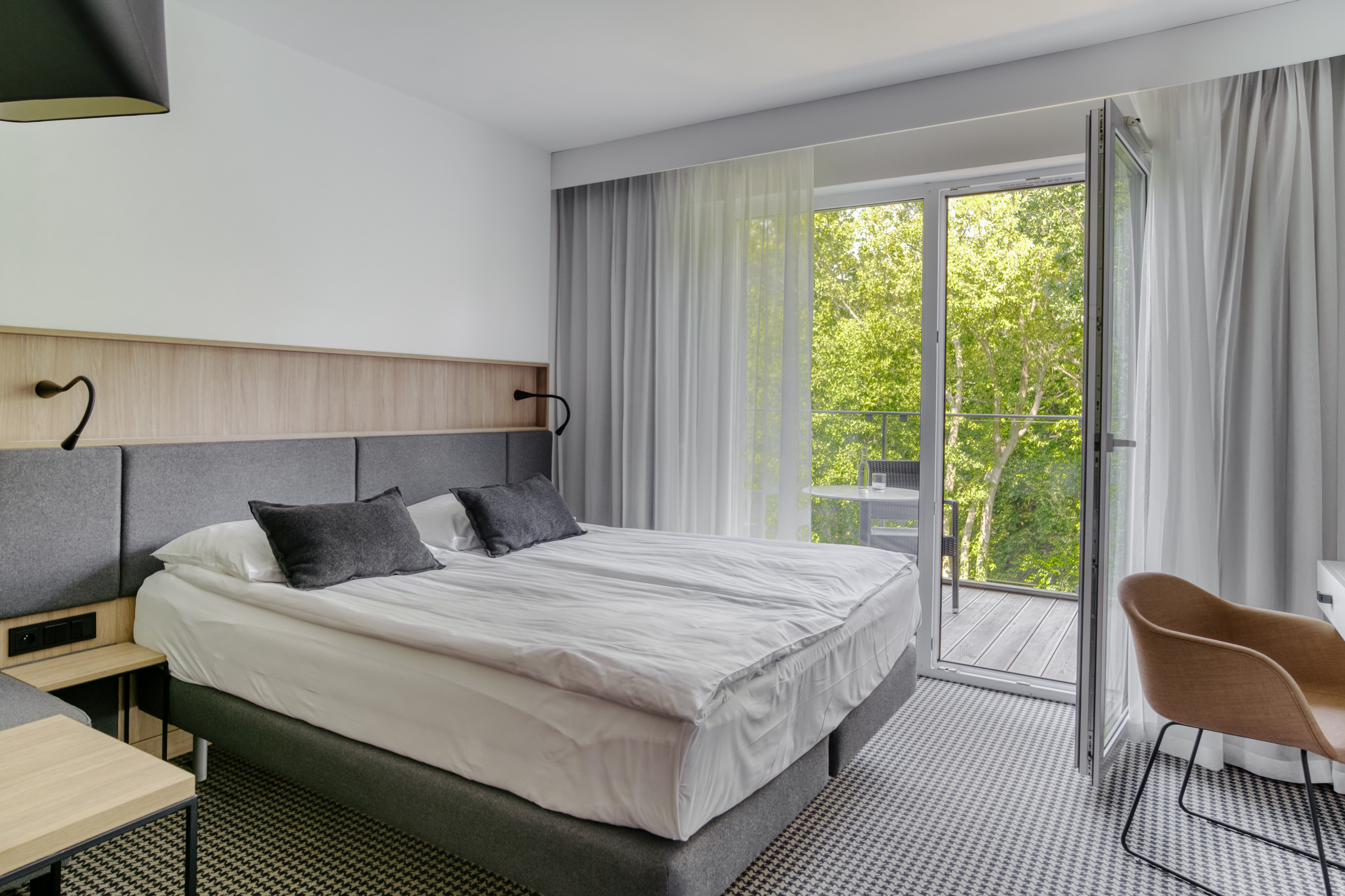 Die Zimmer haben einen Balkon mit Blick auf den Küstennationalpark, ausgestattet mit einem Tisch und Terrassenstühlen. Die Zimmer sind mit Teppichboden oder mit Laminat (gilt nur für Zimmer im Erdgeschoss) ausgestattet.