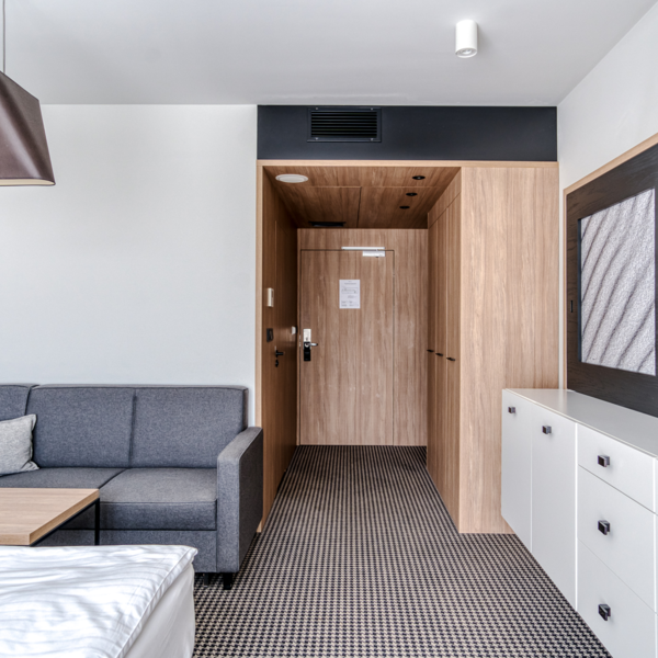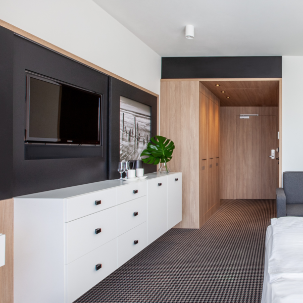 Im Zimmer befindet sich ein Teeset, ein Wasserkocher, eine Minibar, ein Safe, ein Fernseher mit USB- und HDMI-Anschluss. Das Badezimmer ist mit einer Duschkabine, einem Haartrockner, einem Handtuchset, einem Bademantel und Hausschuhen ausgestattet.